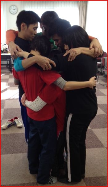 稽古場の隅に、「たまり」を作って、真剣に語り合ってます。