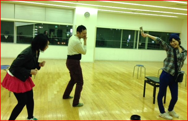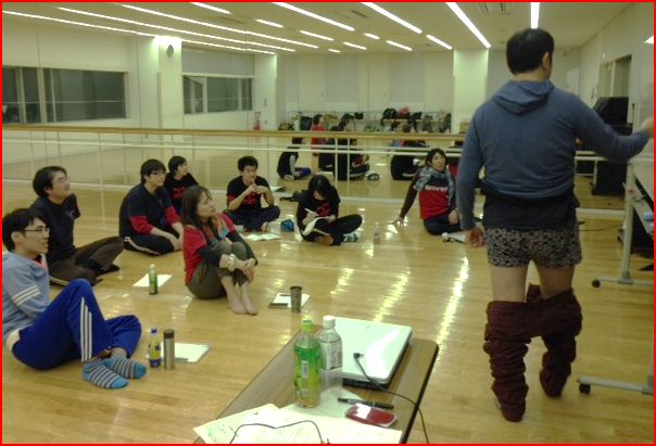 ですが、平日なので、出張帰りのサラリーマンや稽古後に出張先に向かうサラリーマンなどがいて、とても日経新聞感漂う稽古場となりました。