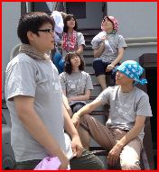 今回の炊出しは、旗揚げからステージに上がり続けていたものの、代表おちやいと夕日をバックに殴りあったことが原因(その後星空を眺めながら和解)で今回ステージには上がらない、この型、中島美弥子さんがメイン担当。併せていろんな衣装も作ってくれました!
